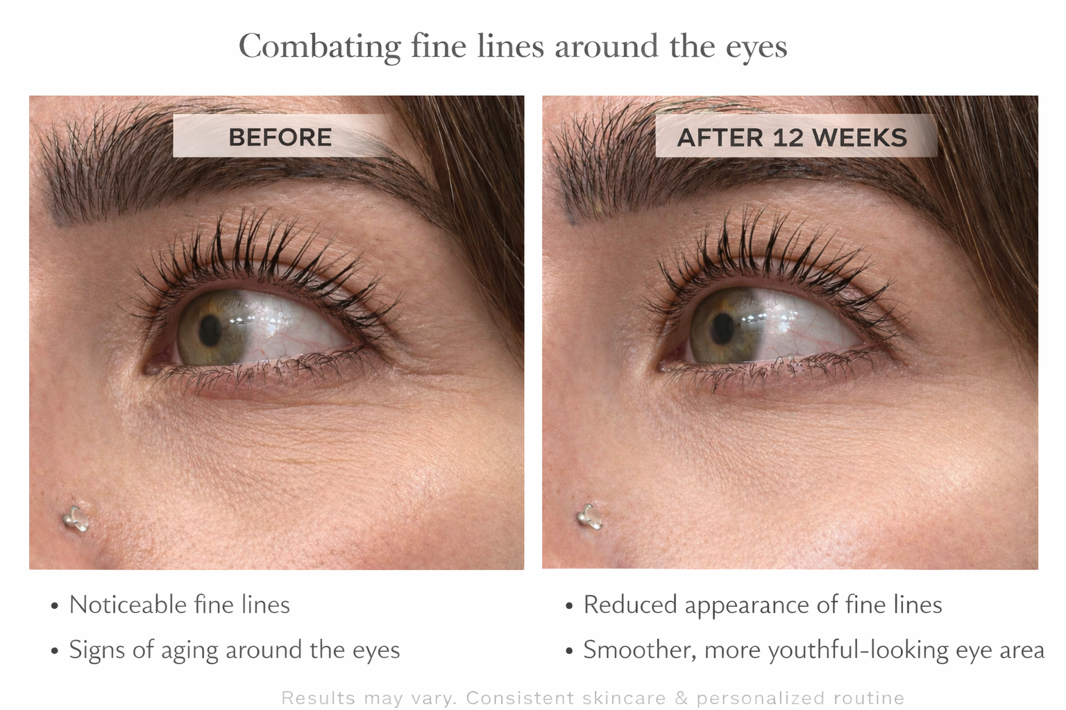 My main concern was dryness and fine lines around my eyes. After completing the skin analysis and following the recommended routine consistently, the eye area looks smoother and feels much more comfortable.